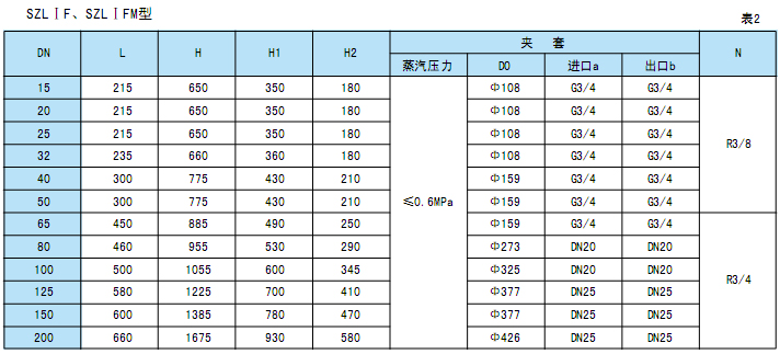 (2)籃式帶夾套直通(tōng)型法蘭連接∑♠型過濾器(qì).(SZLⅠF型、SZLⅠFM型)見(jiàn)≥γ圖3、表2(PN≤5.0MPa..DN25~2©γ✘00)